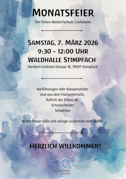 Nächste öffentliche Veranstaltung: Monatsfeier am Samstag, den 07. März 2026 ab 9:30 Uhr in der Waldhalle Stimpfach